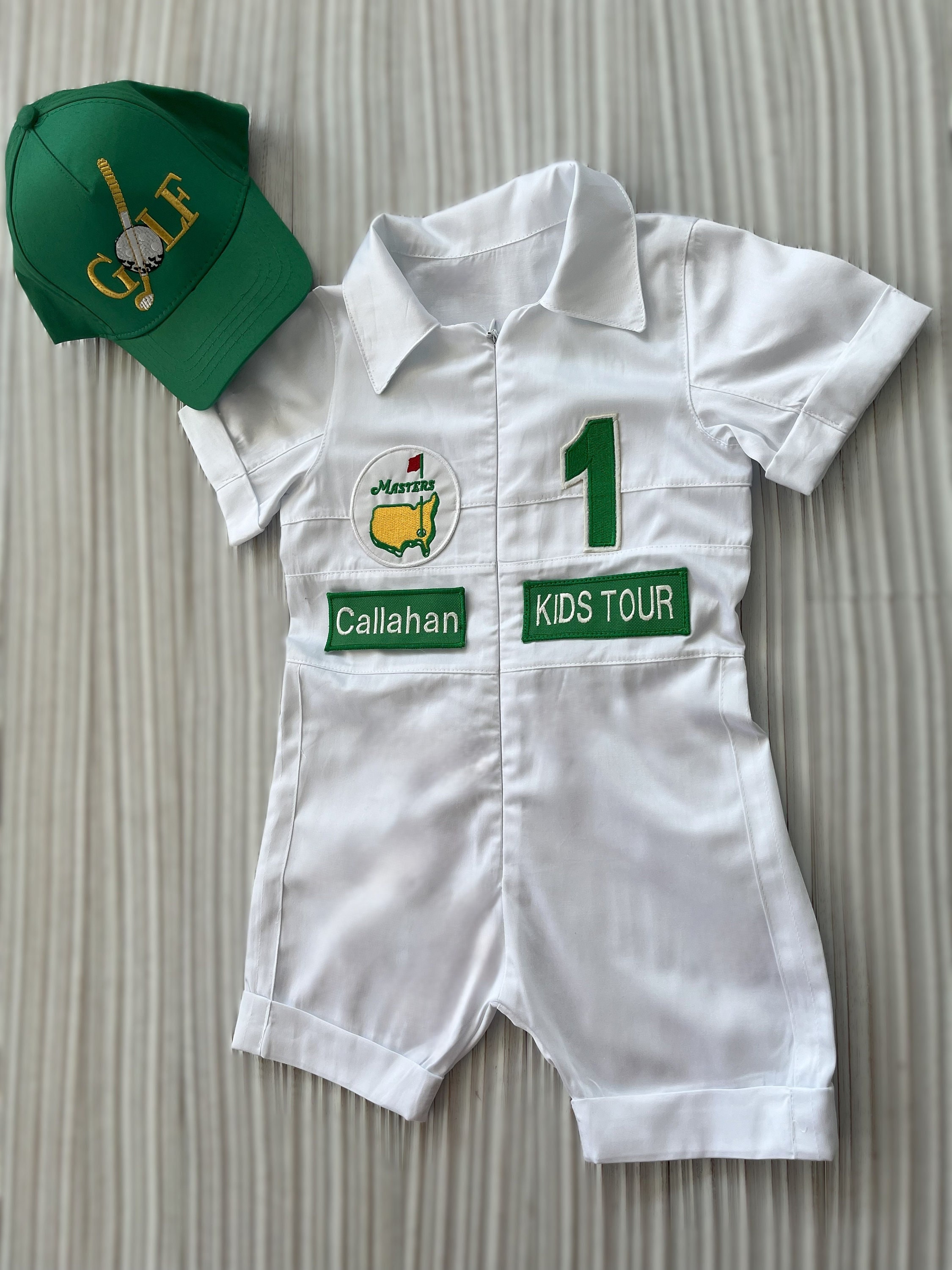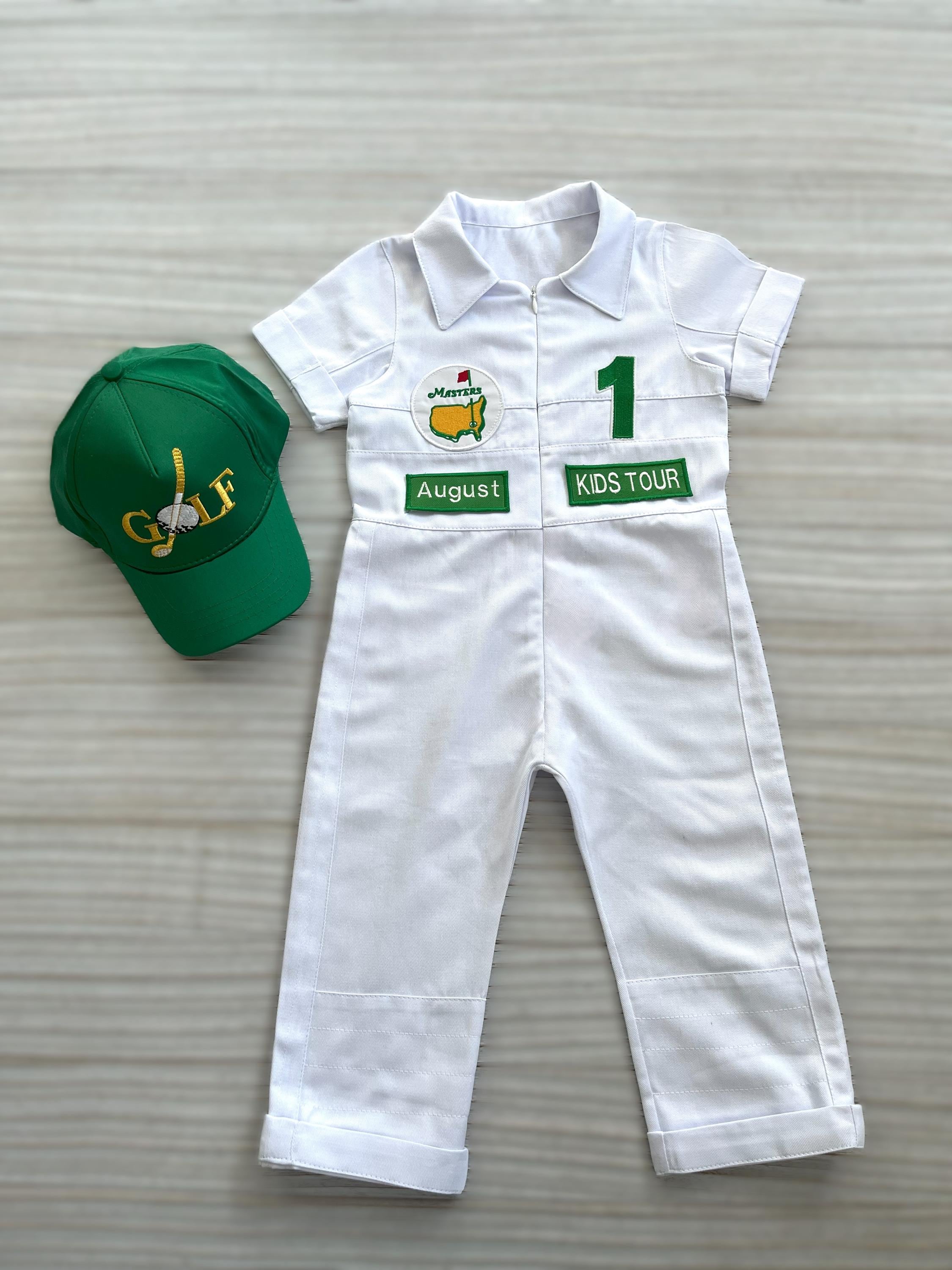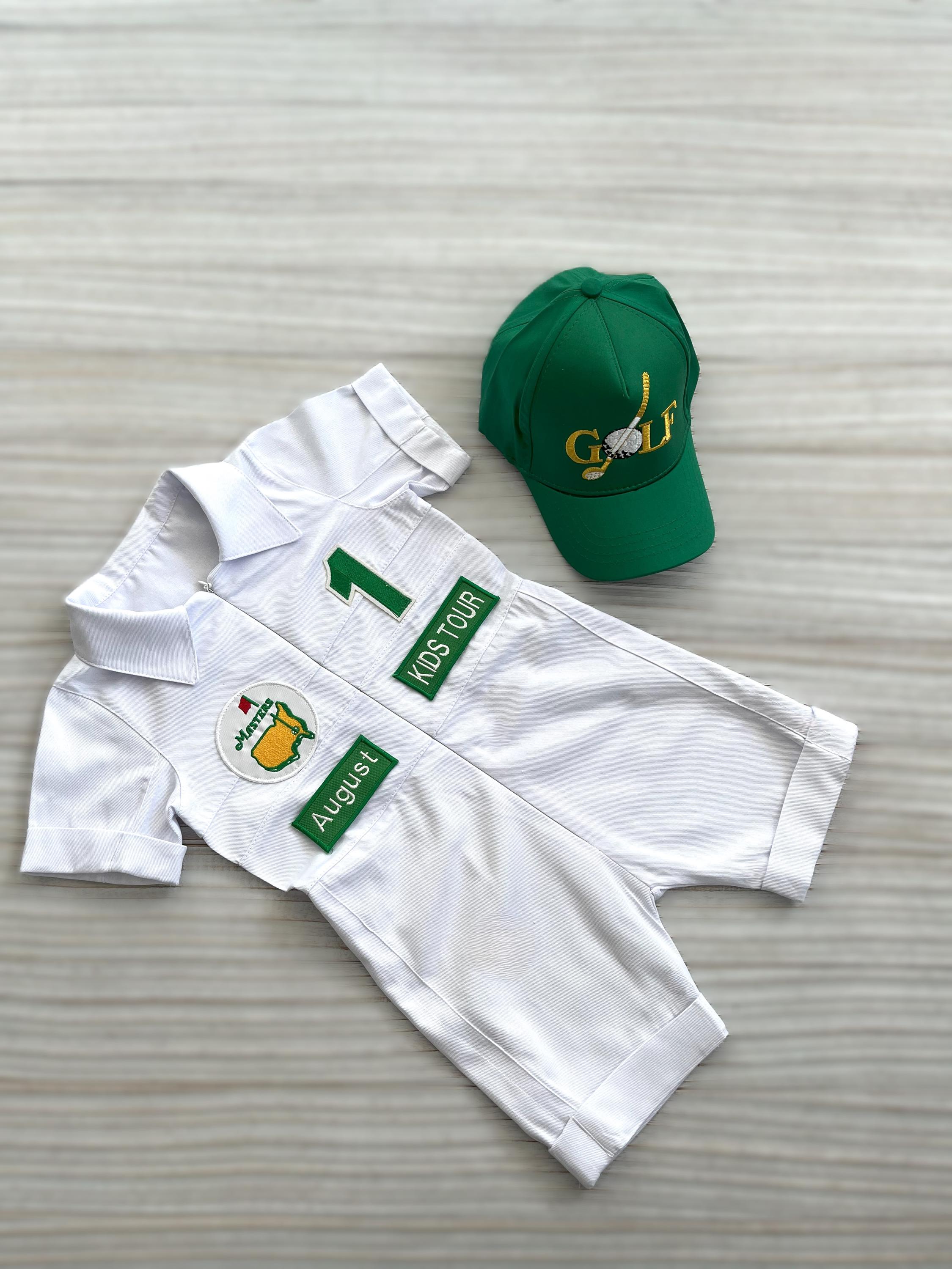 ⭐⭐Personalized Golf Shorts-Long Caddy Outfit for kids*Toddler Golf White-Green Suit*Baby Golf 1st Birthday Uniform*Toddler Masters Costume⭐⭐