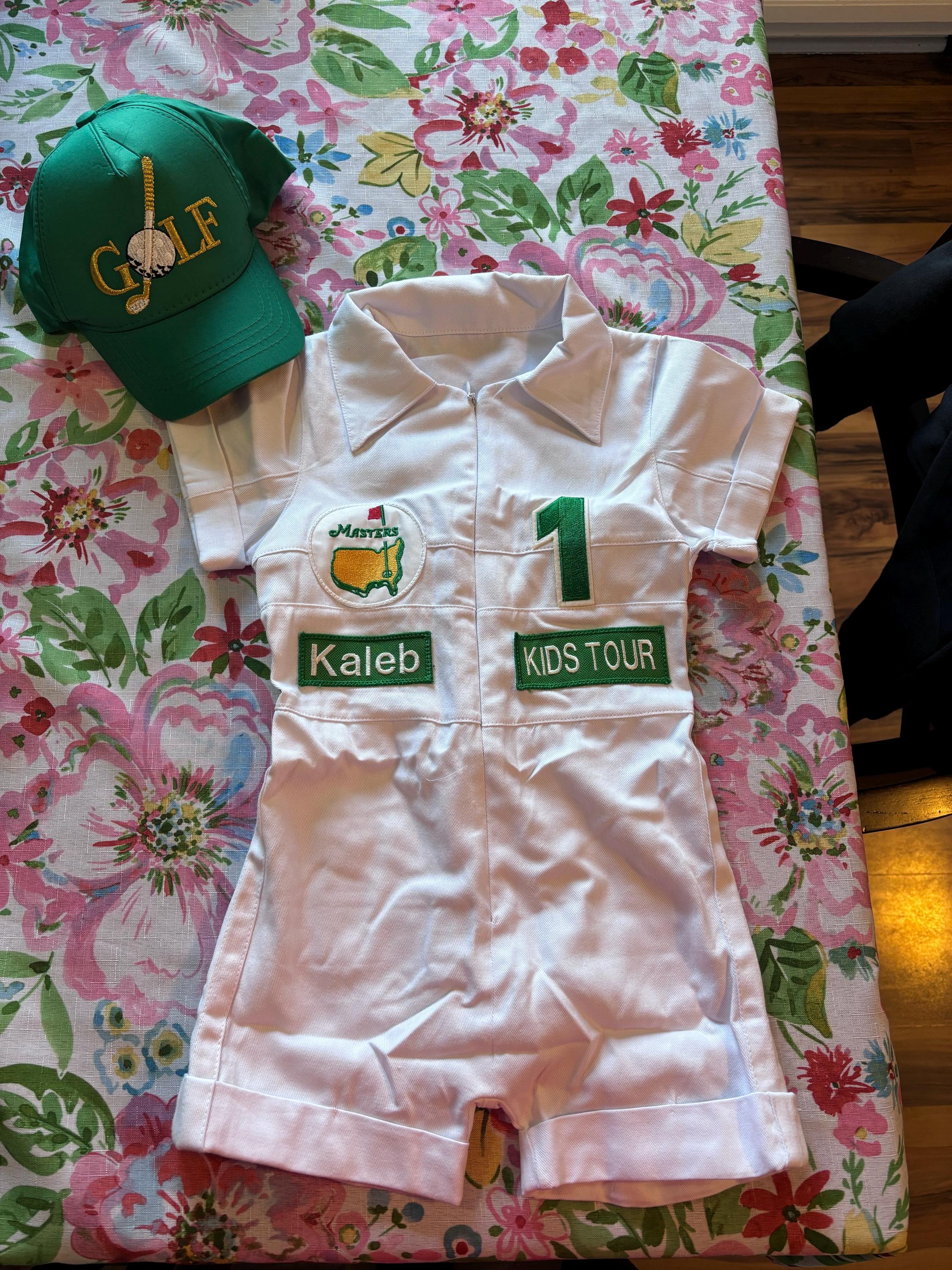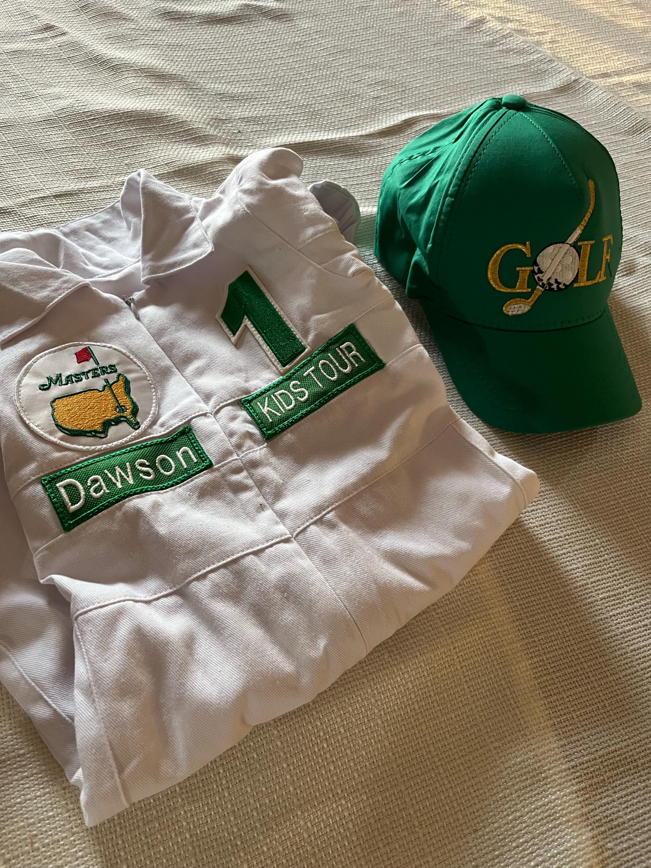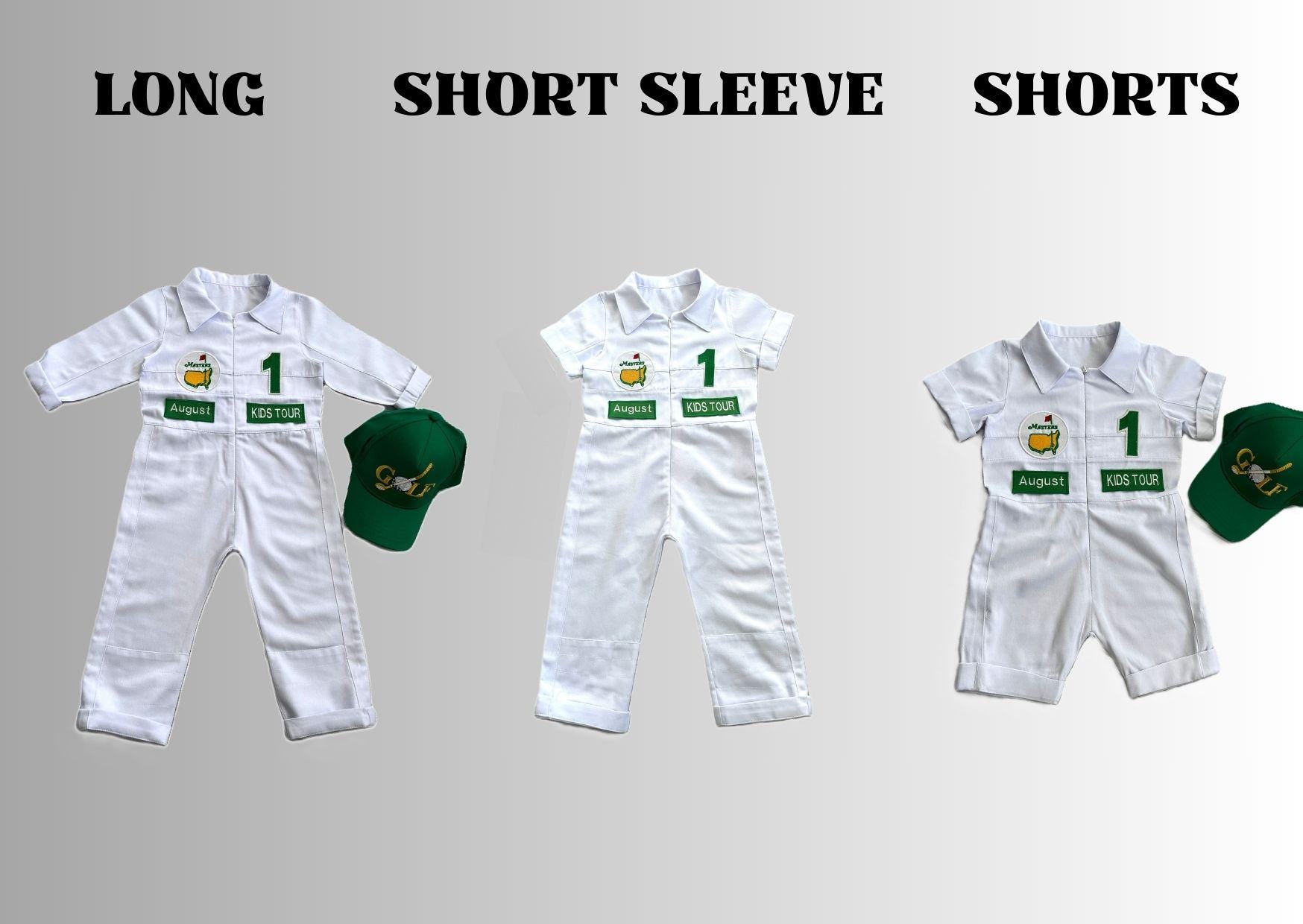 ⭐⭐Personalized Golf Shorts-Long Caddy Outfit for kids*Toddler Golf White-Green Suit*Baby Golf 1st Birthday Uniform*Toddler Masters Costume⭐⭐